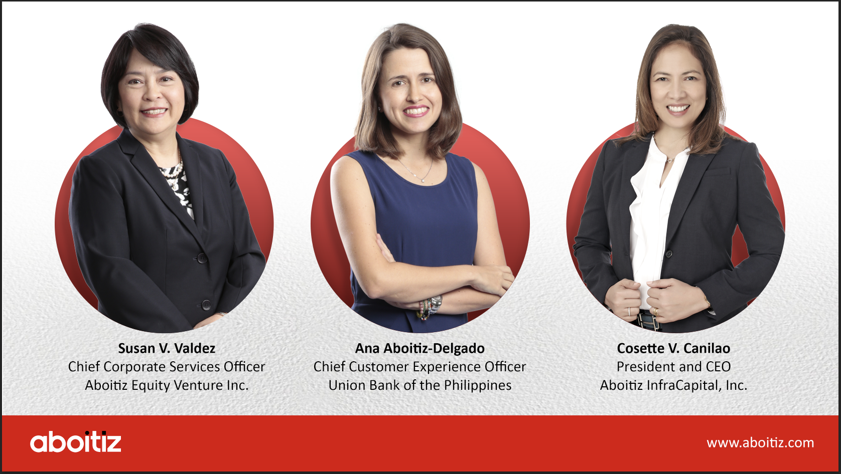 Strong women leaders are celebrated across the group. Ana Aboitiz-Delgado, a fifth generation business leader from the Aboitiz family who concurrently serves as Executive Vice President and Chief Customer Experience Officer at Aboitiz Group banking subsidiary Union Bank of the Philippines and also sits at AEV’s Board. The Group’s infrastructure arm, Aboitiz InfraCapital Inc, is led by Cosette V. Canilao as its President and Chief Executive Officer, while the Group Human Resources initiatives – key for shaping the organization’s people and culture are driven by Chief Human Resource and Chief Corporate Services Officer Susan V. Valdez. Both Canilao and Valdez also sit in the Aboitiz Foundation Board as Trustees.