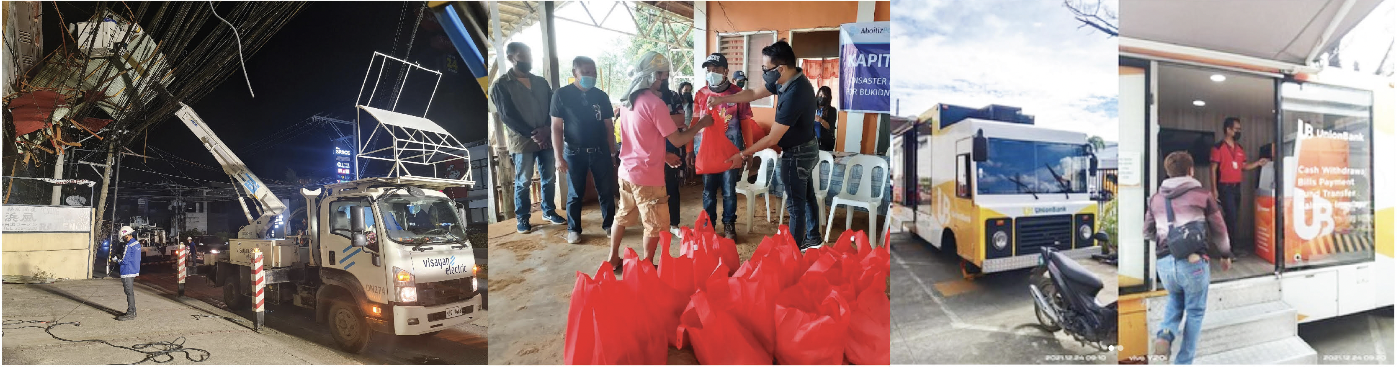 charge their mobile devices or get potable water, and Visayan Electric has done the same at their compound and in compliance with minimum health protocols. We also extended help to our subcontractors with ongoing distribution of a total of 1,576 relief packs.