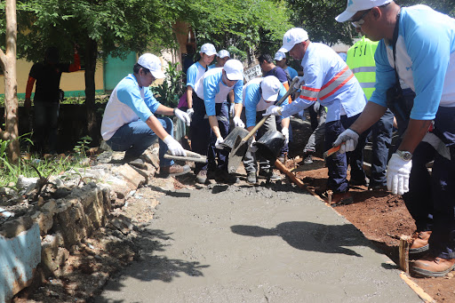 PAVING THE WAY. Volunteers from AboitizPower subsidiary Therma South, Inc. (TSI) construct pathways as part of the Brigada Eskwela in partnership with the Inawayan Elementary School last May 28, 2018.
