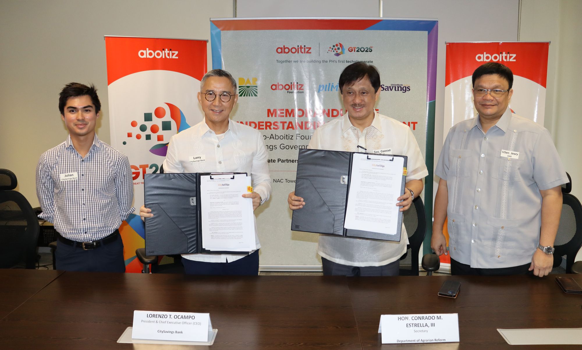City Savings Bank (CitySavings), the thrift bank subsidiary of Union Bank of the Philippines (UnionBank), and a proud member of the Aboitiz Group, signed a Memorandum of Agreement with the Department of Agrarian Reform (DAR), which will enable the Bank to offer a salary loan facility to DAR employees nationwide. This was held together with the Memorandum of Understanding (MOU) signing between DAR and Pilmico, another Aboitiz company, last October 14, 2022, at the Aboitiz Head Office, NAC Tower, Bonifacio Global City, Taguig.
