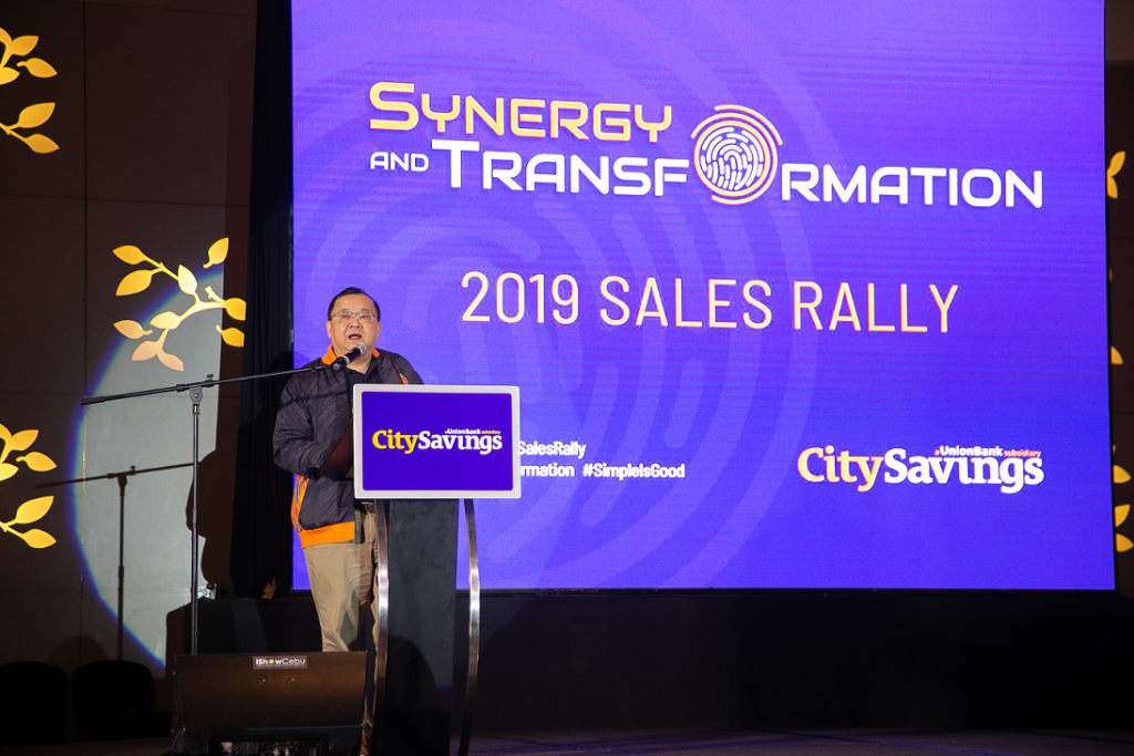 We want! We can! We will! This was City Savings Bank’s (CitySavings) battle cry that resonated during the 2019 Sales Rally at Radisson Blu Hotel, Cebu City last August 4. More than 300 team leaders from sales and operations, the management team, and executives from UnionBank and other subsidiaries were united under the theme: Synergy and Transformation.