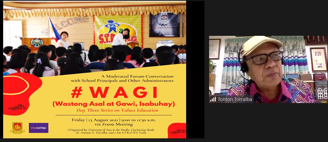 Dr. Antonio N. Torralba, an educator with tremendous experience in basic education helped the DepEd participants boost the campaign of #WAGI (Wastong Asal at Gawi, Isabuhay) that focuses on the long and delicate process of “pagsasabuhay” (living) “wastong asal” (right behavior) and “gawi” (human virtues).