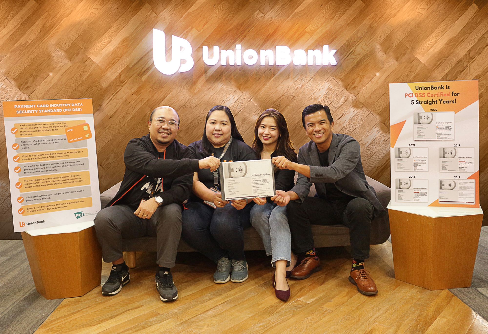 UnionBank once again has been recently certified to the Payment Card Industry-Data Security Standard (PCI-DSS). This marks the fifth consecutive year that the Bank was able to earn the said certification. UnionBank also remains to be the only local commercial bank that is PCI-DSS compliant, giving it an advantage over other debit and credit card providers in terms of security.