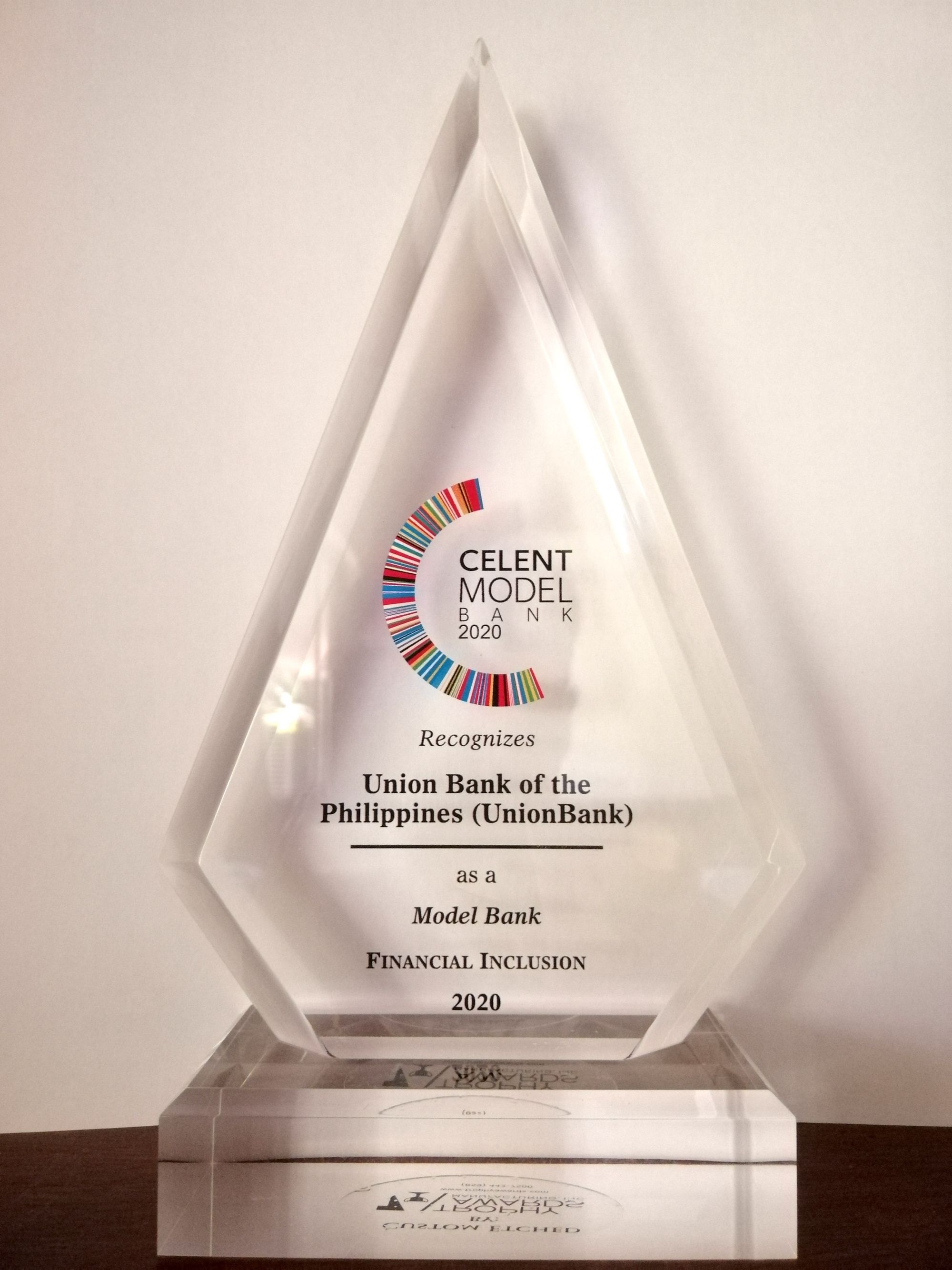 UnionBank recently received the 2020 Model Bank for Financial Inclusion Award from renowned financial services research and advisory firm Celent, a division of global consulting firm Oliver Wyman, for the bank’s two fintech initiatives promoting greater access to financial services.