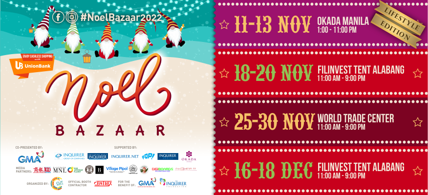 For those who are interested in visiting this year’s Noel Bazaar, it will take place from November 11 to December 18 and will be held in three different venues: Okada Manila (November 11 to 13), The World Trade Center in Pasay City (November 25 to 30), and the Filinvest Tent in Alabang (November 18 to 20 and December 16 to 18).