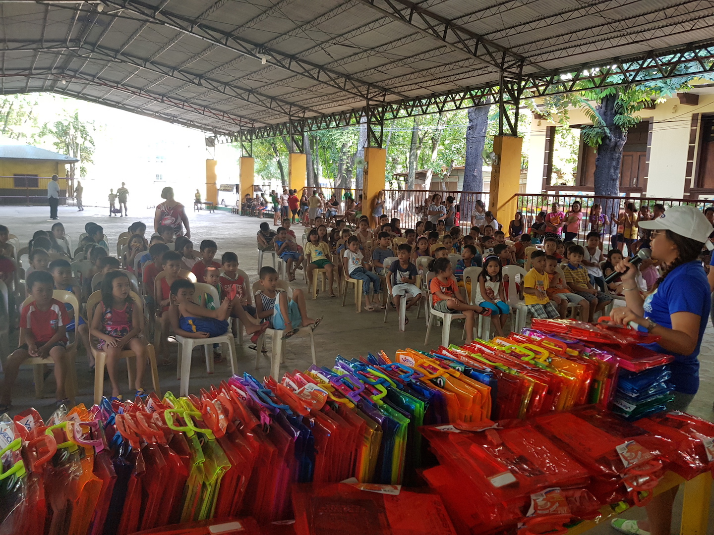 San Nicolas Elementary School Assistant Principal Lunessa Pogoy thanked the VECO Kaibigans for sharing a bit of their time and for distributing school supplies to the students.