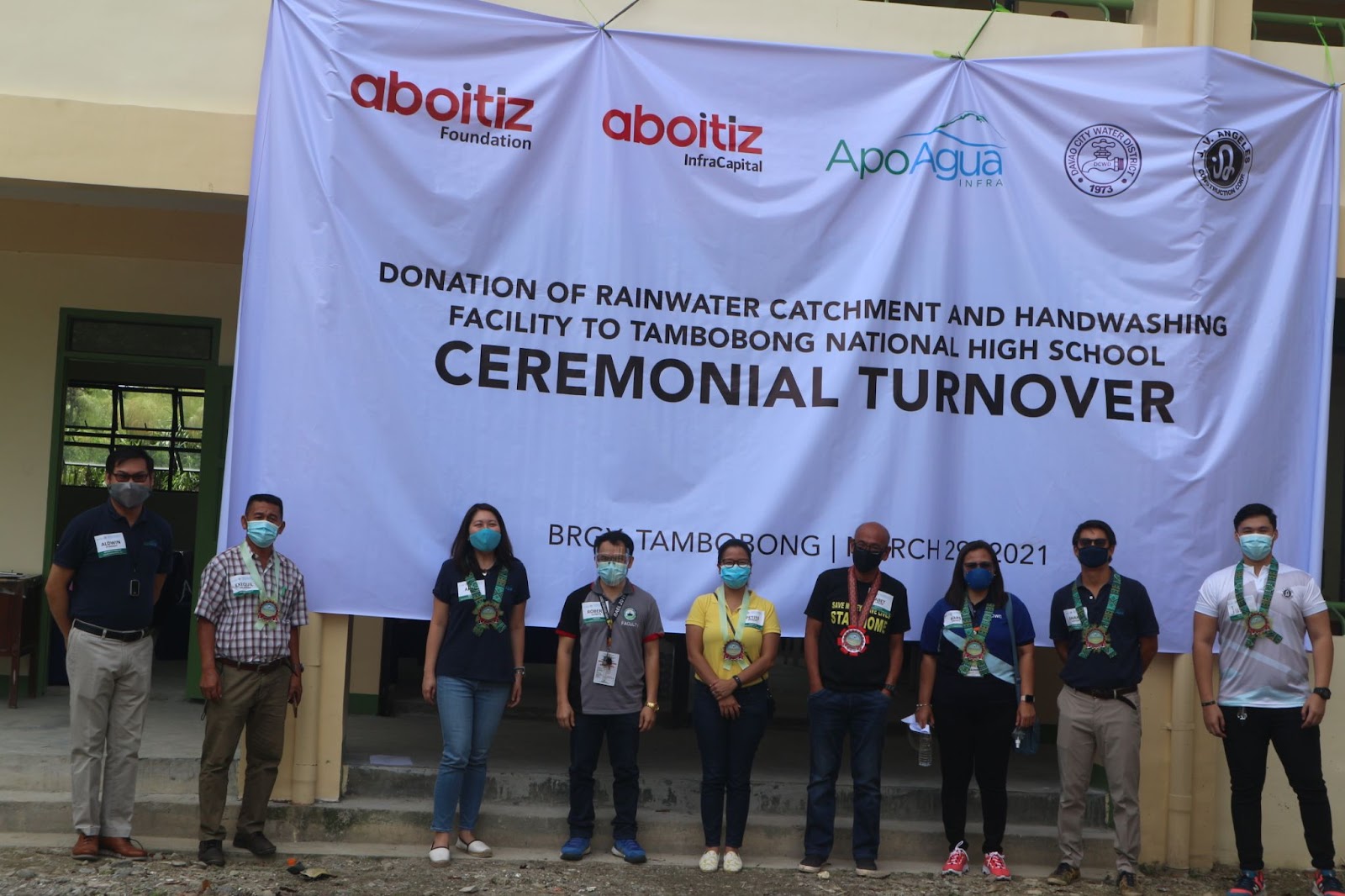 Fortifying its commitment to support its host communities, Apo Agua Infrastructura, Inc. (Apo Agua), together with Davao City Water District (DCWD), recently turned over its donation of rainwater catchment and handwashing facility to Tambobong National High School (TNHS) in the third district of Davao City.