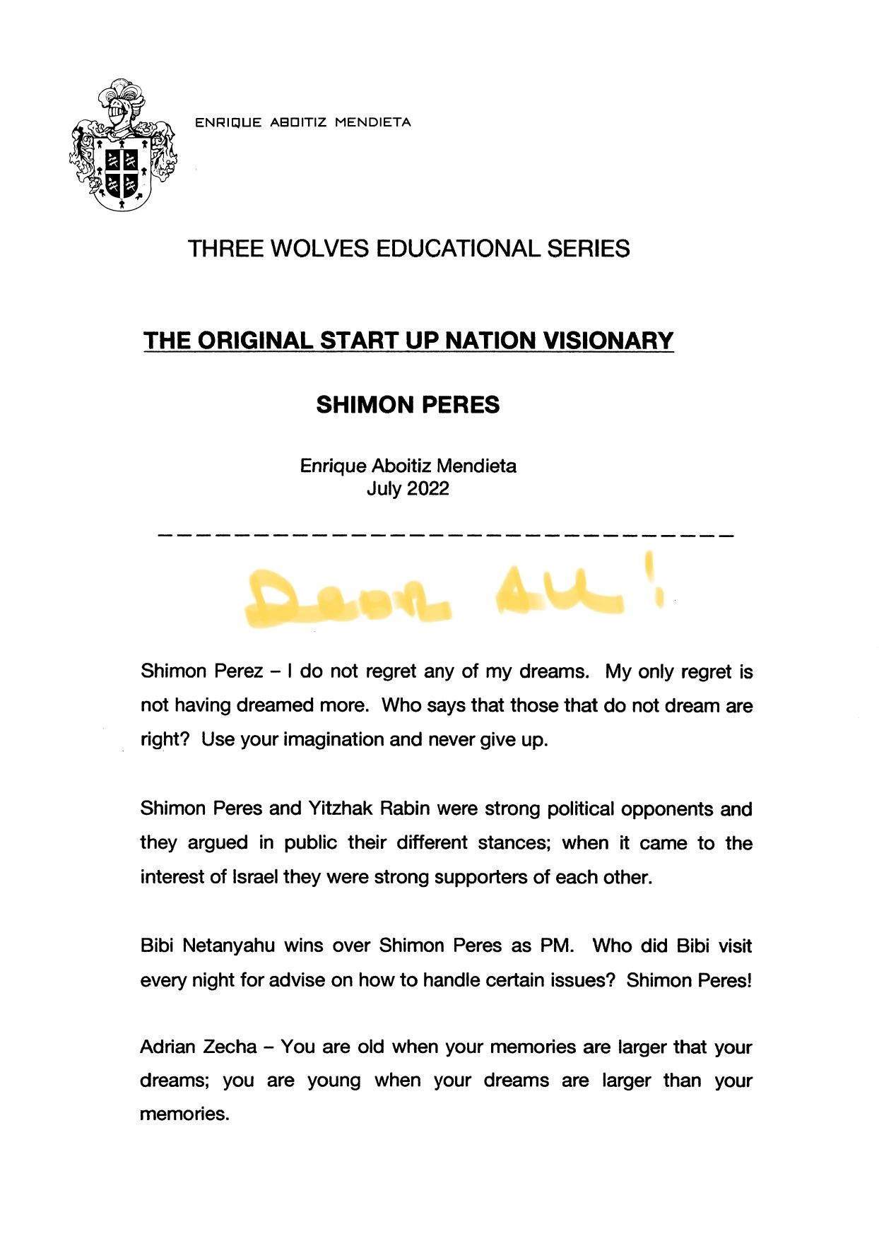 Shimon Peres — I do not regret any of my dreams. My only regret is not having dreamed more. Who says that those who do not dream right? Use your imagination and never give up.