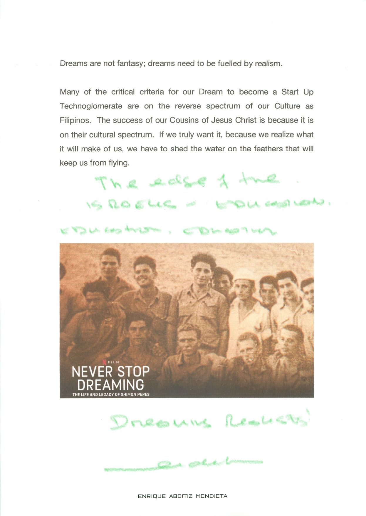 Many of the critical criteria for our Dream to become a Start Up Techglomerate are on the reverse spectrum of our Culture as Filipinos. The success of our Cousins of Jesus Christ is because it is on their cultural spectrum. If we truly want it, because we realize what it will make of us, we have to shed the water on the feathers that will keep us from flying