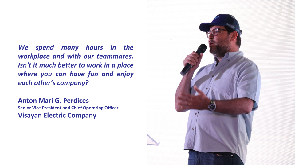 Anton Mari G. Perdices, Senior Vice President and Chief Operating Officer of AP subsidiary Visayan Electric Company (VECO), stressed the importance of having a place where one can work and have fun at the same time.