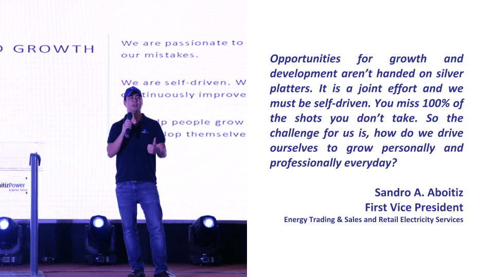 Sandro A. Aboitiz, AboitizPower First Vice President for Energy Trading and Sales, meanwhile, emphasized how learning comes in different forms, even through one’s successes and mistakes.