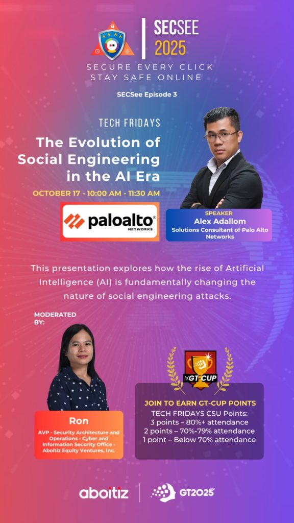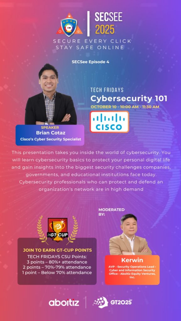 Every October, Aboitiz Equity Ventures (AEV) celebrates Cybersecurity Awareness Month through its flagship initiative, SECSee. This year’s theme, “Secure Every Click, Stay Safe Online,” renewed our collective commitment to safeguarding AEV’s digital ecosystem and strengthening a culture of cyber vigilance across the organization.