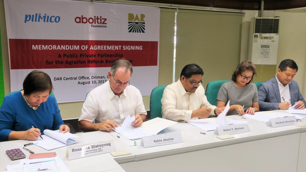 Pilmico Foods Corporation and Aboitiz Foundation Inc. (AFI) have officially sealed their partnership with the Department of Agrarian Reform (DAR) at the signing of a Memorandum of Agreement at the DAR Head Office in Quezon City, recently.