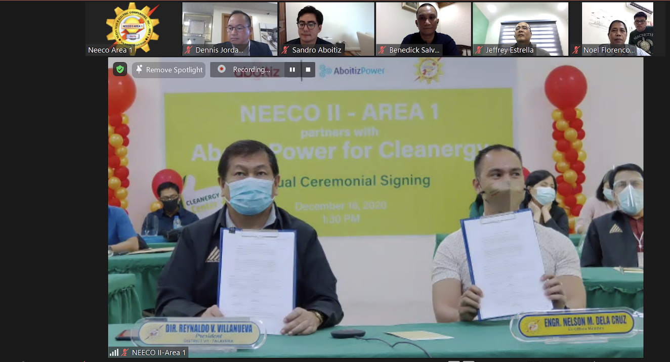 In a virtual meeting room attended by other AboitizPower executives, First Vice President for Commercial Operations Juan Alejandro Aboitiz likewise expressed his gratitude for having been chosen to support the Cleanergy needs of NEECO II Area 1, “On behalf of AboitizPower, we are extremely honored to continue this journey and stand once again alongside NEECO II Area 1 in its pursuit of reliable and clean energy for households, businesses, and the communities in its franchise area. This is such an energizing way to end the year, and truly a moment to be proud of as we accelerate our group-wide efforts towards integrating environmental stewardship plus pursuing partnerships for long-term growth.”