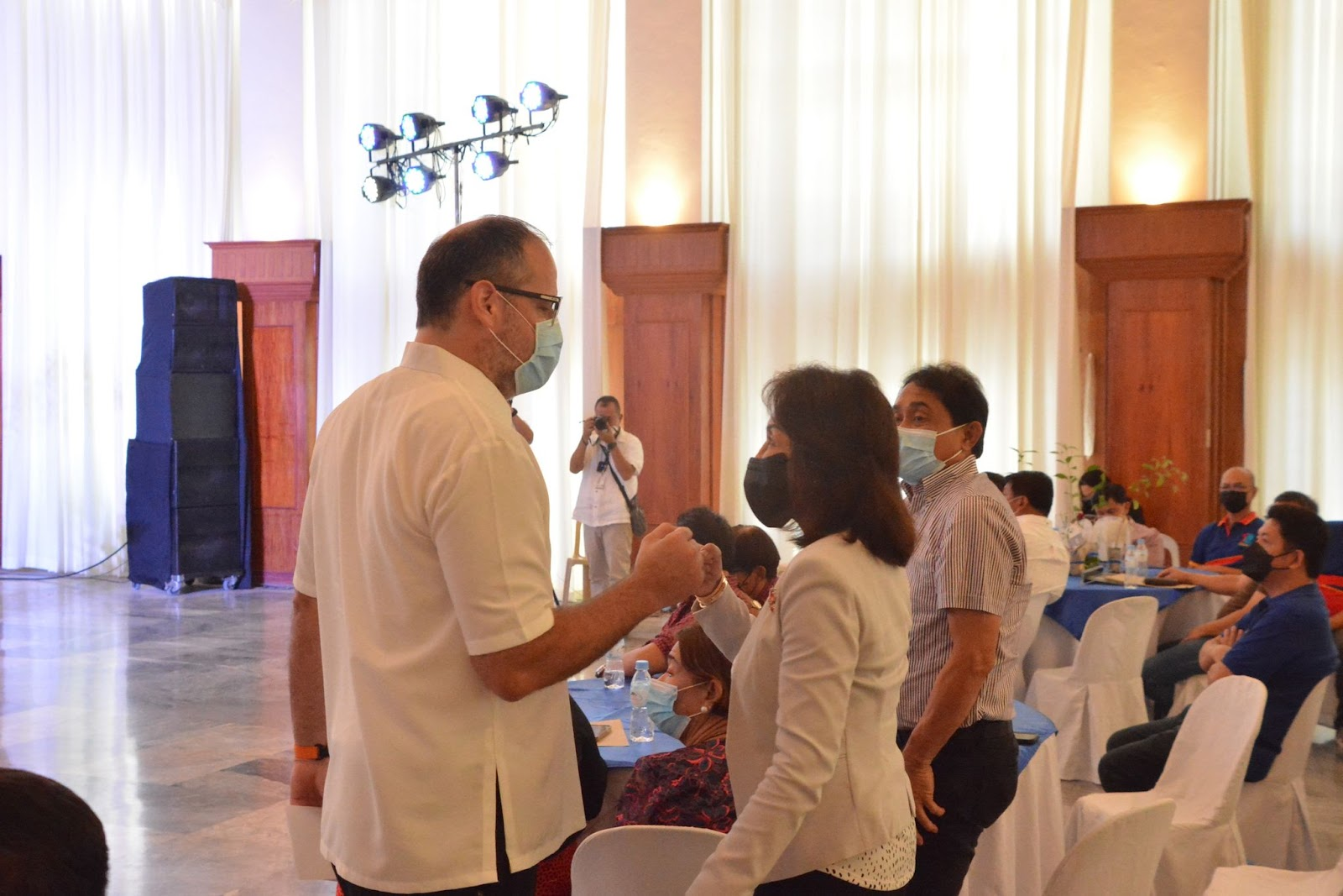 FIST BUMP. AboitizPower Distribution Utilities Chief Operating Officer Anton Mari Perdices and Cebu Gov. Gwendolyn Garcia share a light moment during the Cebu Provincial Government’s appreciation ceremony for stakeholders who helped in Cebu’s recovery from supertyphoon Odette at the Cebu Capitol Social Hall on Feb. 7, 2022. (Photo by Capitol PIO)