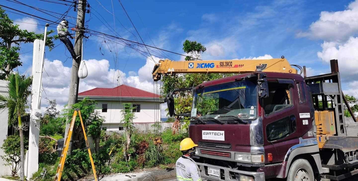 Aside from its 15 linemen, support teams, and drivers, Ebatech also offered its equipment such as boom trucks as well as 10-wheeler and six-wheeler trucks in transporting and lifting electrical posts.