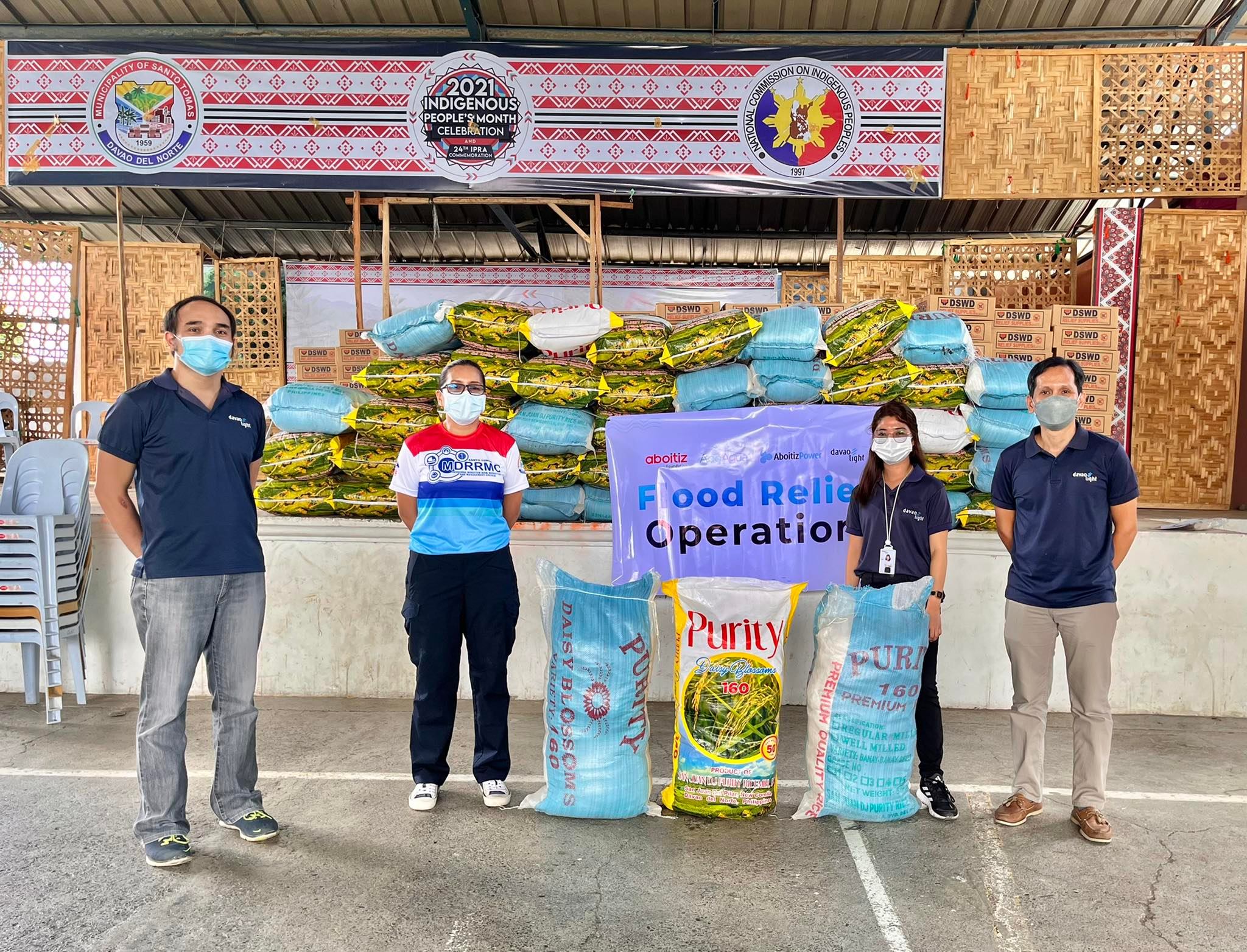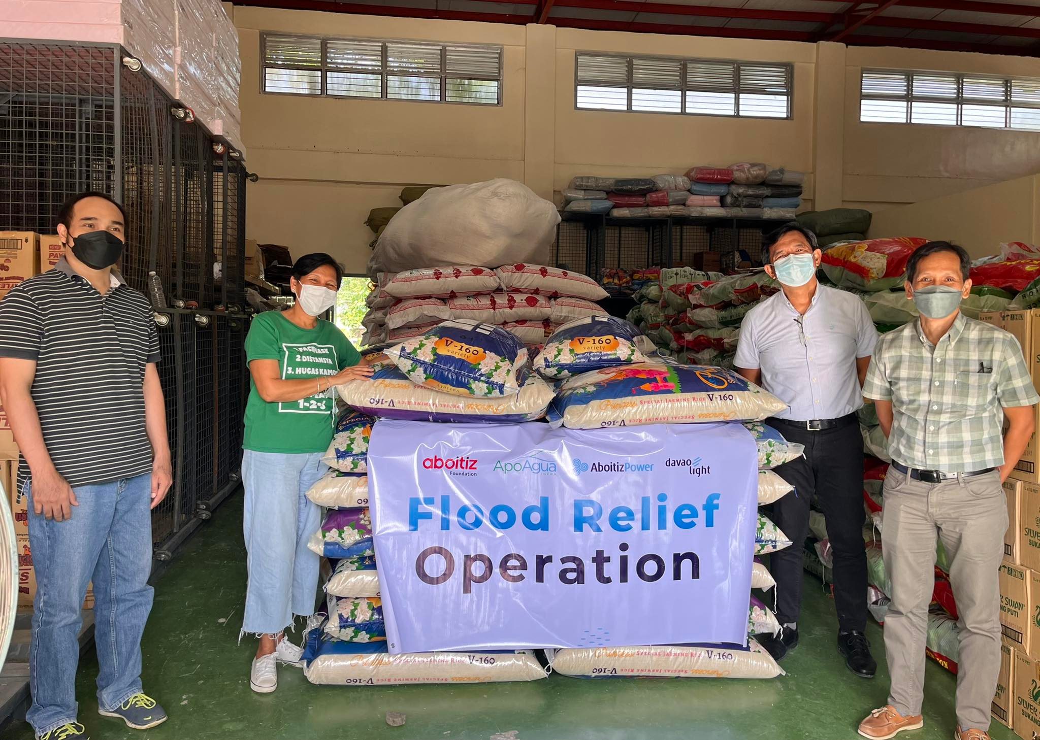 In response to the displacement of families due to flooding in the above-mentioned areas, Davao Light and Power Co. Inc., Aboitiz Foundation, Inc., together with other Davao-based Aboitiz business units, turned over sacks of rice to the Davao City Social Welfare and Development Office (CSWDO) at their warehouse in Maa, Davao City on April 13, 2022.