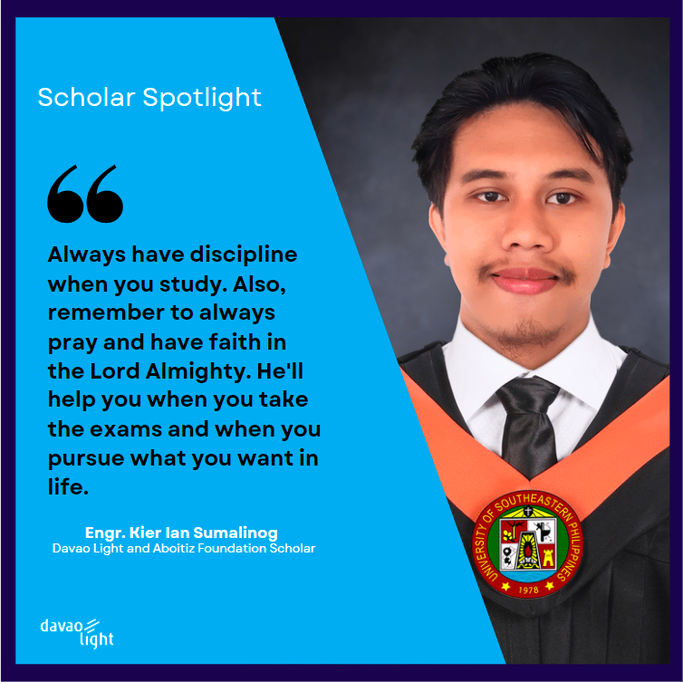 “Marianne and I were college classmates and she told me that [Davao Light and Aboitiz Foundation] were looking for additional scholars. I was already in third year when I applied for the scholarship and I got in after the interview,” Kier retold.