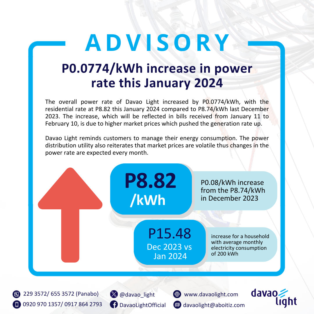 Power Rate Increase In Jan 2024 For Davao Light Customers