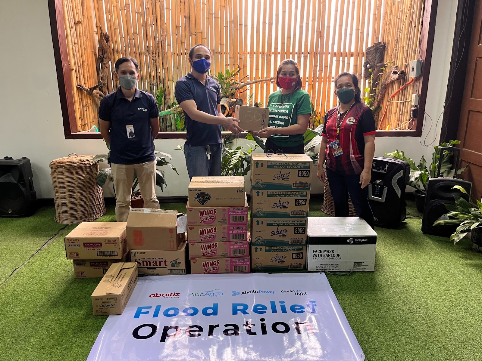After heavy rains that caused flooding in multiple low-lying areas in Mindanao on March 8, 2022, Davao Light and Power Co. and its social development arm, Aboitiz Foundation Inc. donate hygiene materials to Panabo City and the municipalities of Carmen, Dujali, and Sto. Tomas.