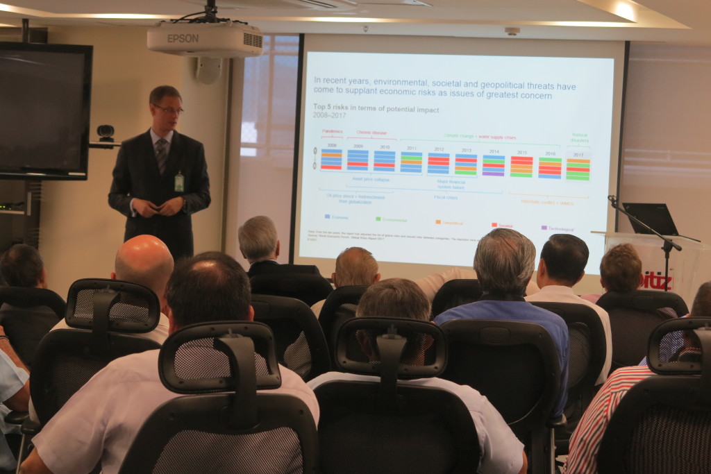 Wolfram Hedrich, Executive Director of Asia Pacific Risk Center at Marsh & McLennan Cos., provided insights into the key global risks facing the business and government, as well as the collective view of risk experts on the most significant threats to global prosperity over the next decade. This year’s report highlighted the social and political risks and examined some of their root causes.