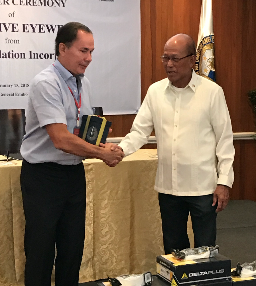 On Jan. 15, 2018, Aboitiz turned over 2,300 protective eyewear to Sec. Lorenzana at the Department of National Defense Main Building in Camp Aguinaldo. AFP Chief of Staff  Gen. Rey Leonardo Guerrero and AEV Government Relations First Vice-President David Jude Sta. Ana were also there to witness the turnover.