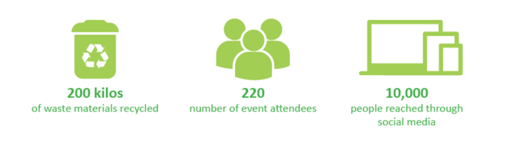 Three competing schools – De La Salle College of Saint Benilde (CSB), Asia Pacific College (APC) and SoFA Design Institute (SoFA) – showcased their sustainable designs on the runway. The participating students used 200 kilos of recycled materials in making their collections.