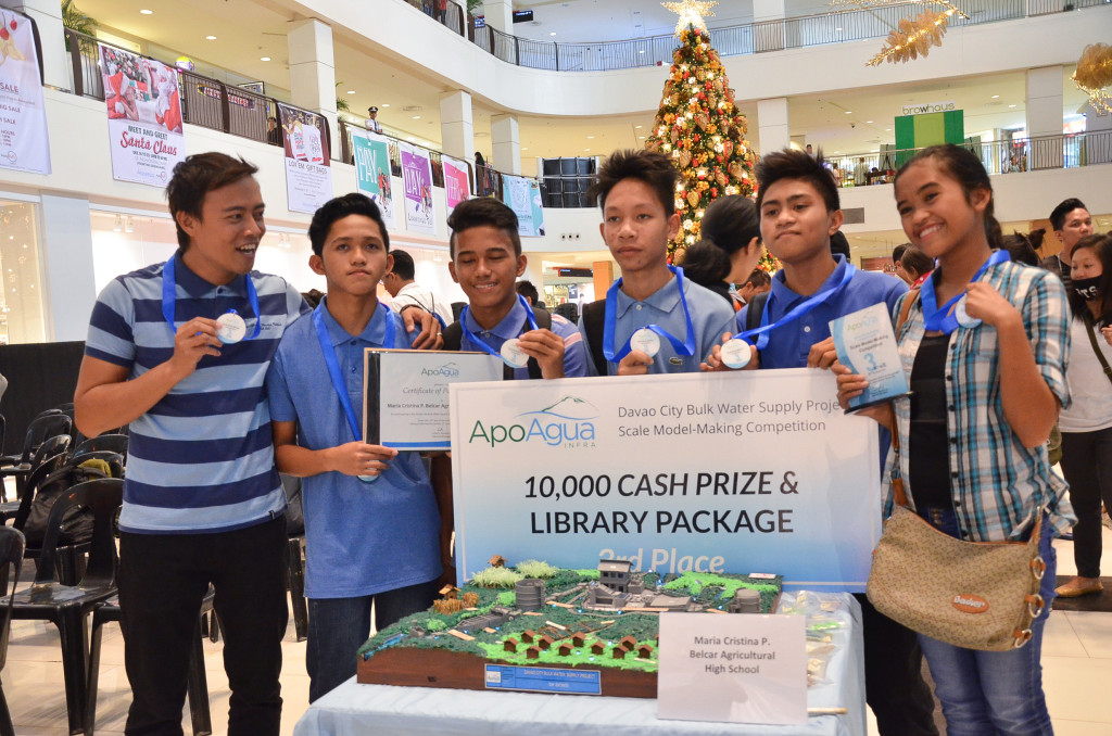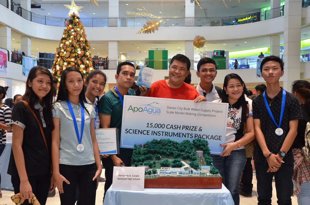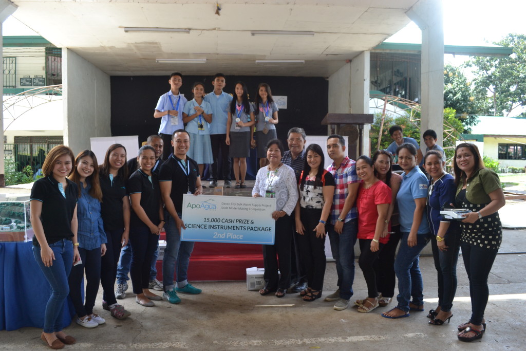 Ms. Santos, along with her 5 students Jason Gepte, Norlejan Piquit, Enrico Baer, Jason Talin and Mark Joseph Borbon from Sto. Niño National High School, bested other 19 school-teams who joined the Davao City Bulk Water Supply Project: Scale Model-Making Competition organized by Apo Agua Infrastructura Inc. (Apo Agua).